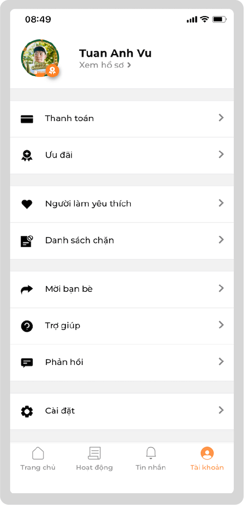 Mở ứng dụng bTaskee, sau đó chọn Ưu đãi (bRewards) trong danh sách của mục Tài khoản.