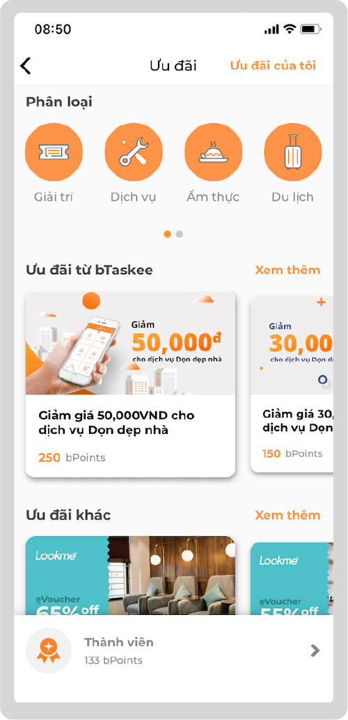 Chọn các ưu đãi có sẵn từ danh sách các danh mục hoặc các ưu đãi từ bTaskee.