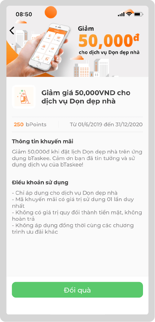 Tích điểm với mỗi lần sử dụng các dịch vụ của bTaskee và cùng tận hưởng những ưu đãi vô cùng hấp dẫn.