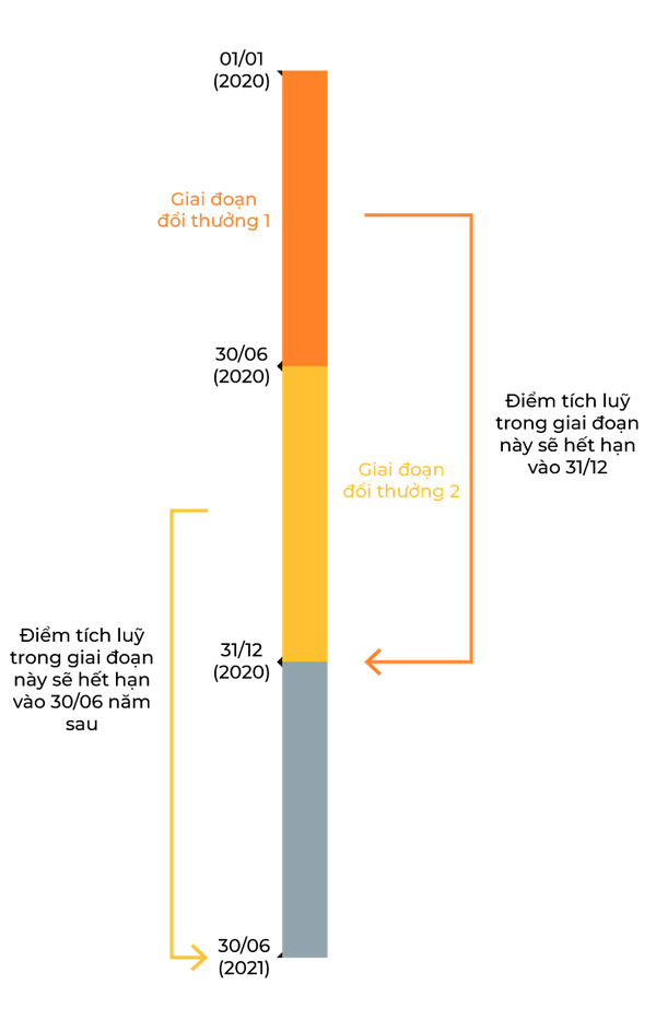 Bạn sẽ phải tích điểm xếp hạng lại từ đầu mỗi khi bắt đầu một chu kỳ mới. Một năm có 02 chu kỳ, mỗi chu kỳ kéo dài 06 tháng.