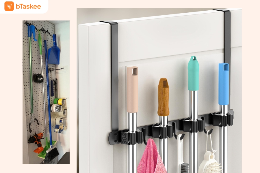 Thay vì để các dụng cụ dọn dẹp như chổi, cây lau nhà hay máy hút bụi nằm rải rác khắp nơi, hãy tận dụng những góc khuất: sau cánh cửa, gầm cầu thang hoặc khoảng trống cạnh tủ để bố trí nơi cất giữ cố định. Khi các dụng cụ được sắp xếp đúng nơi, không gian trở nên ngăn nắp, việc tìm và sử dụng cũng nhanh chóng, dễ dàng hơn.