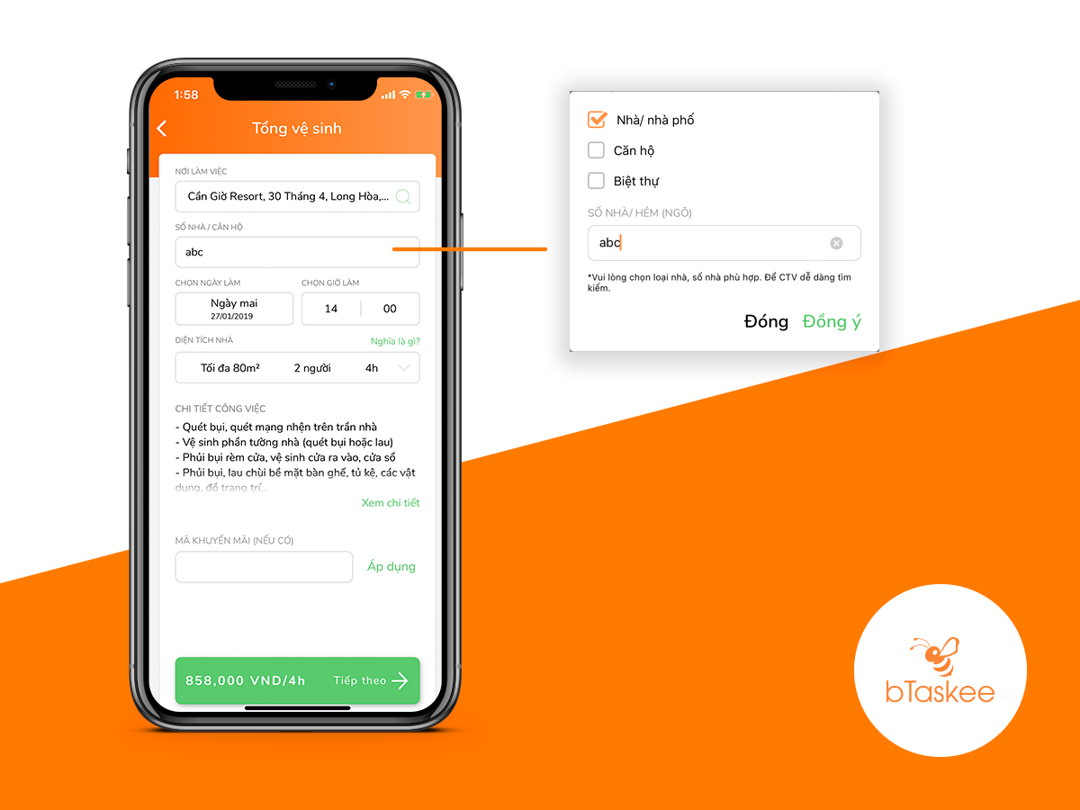 3. Làm thế nào để đăng lịch cho Gói tổng vệ sinh trên ứng dụng bTaskee?
