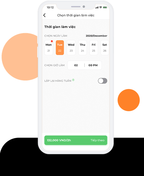 Đăng lịch với 60 giây và chỉ cần từ 5 phút để có người giúp việc theo giờ nhận việc. Cần lúc nào đặt lịch lúc đó nên có thể giảm chi phí thuê và đào tạo nhân sự cố định.