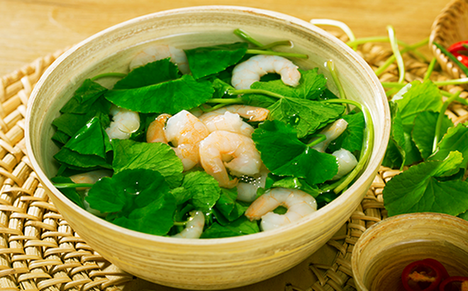 - Add pennywort and season the soup with 1 teaspoon of salt, 2 teaspoons of broth mix, half a teaspoon of MSG and stir lightly to mix them together.