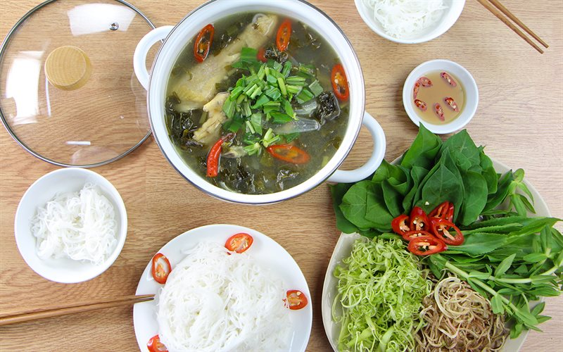 - Serve the hot pot onto the table with rice noodles and seasonal vegetables. You can buy meat, fish, cheese, or anything your family prefer. However, to preserve the original taste of this soulful dish, we recommend you to simply enjoy it as it is with your family and friends.