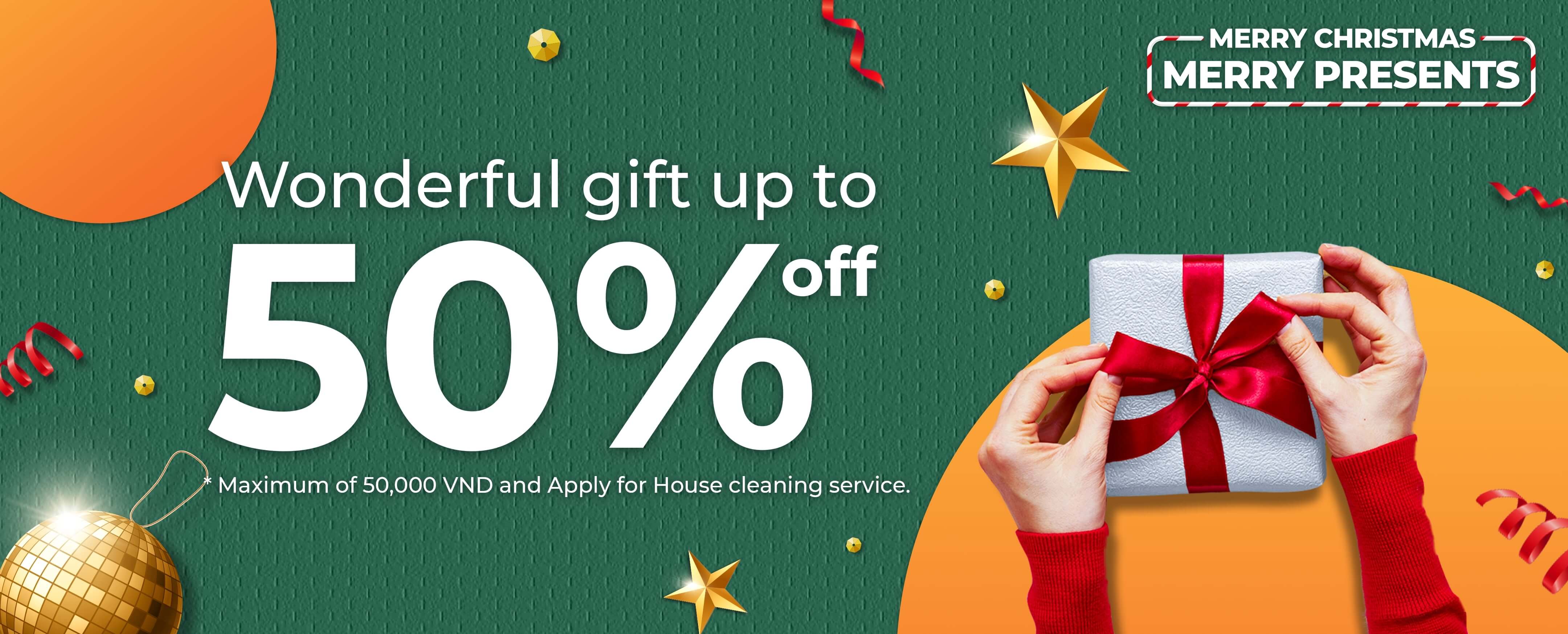 From December 18th to December 25th, open bTaskee app to get a Special gift Up to 50% Off, apply for House cleaning service only