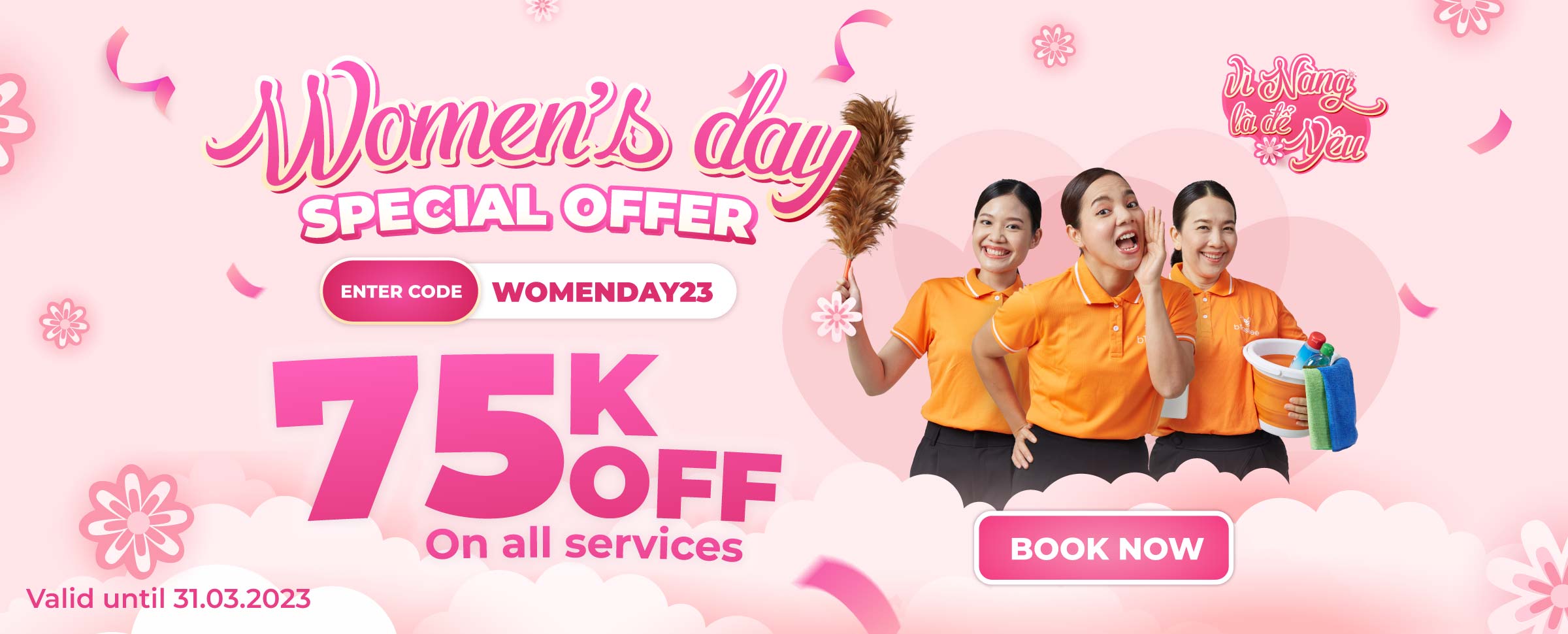 Enter code WOMENDAY23 to get a discount of 75K for new users.