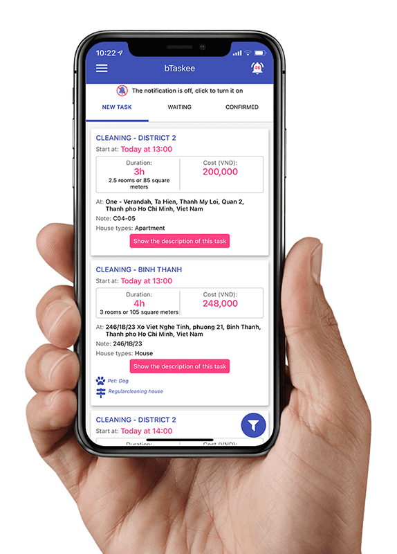 bTaskee is recently the only application operating in on-demand home cleaning service in Vietnam