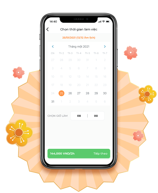 Thao tác 60 giây trên ứng dụng, có ngay người nhận việc sau 60 phút. Hỗ trợ đặt lại với thao tác đơn giản trên ứng dụng.
