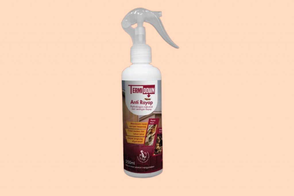 Ingin produk anti rayap yang tidak bau? Kamu bisa mencoba produk dari Termidown yang merupakan insektisida khusus untuk mengatasi rayap yang praktis dan mampu membasmi rayap sampai ke ratu rayap dan koloninya. Penggunaannya pun mudah, kamu hanya perlu menyemprotkan cairan pada permukaan perabotan yang rawan terkena rayap secara merata. Selain untuk rayap, produk ini juga mampu mengatasi kumbang kayu. Harga produk ini cukup terjangkau dengan kisaran harga Rp. 55.000 per 500 ml.