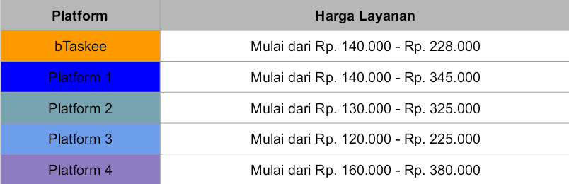 Catatan: Harga di atas hanya perkiraan dan dapat berubah sewaktu-waktu. Disarankan untuk menghubungi langsung platform terkait untuk informasi lebih lanjut.