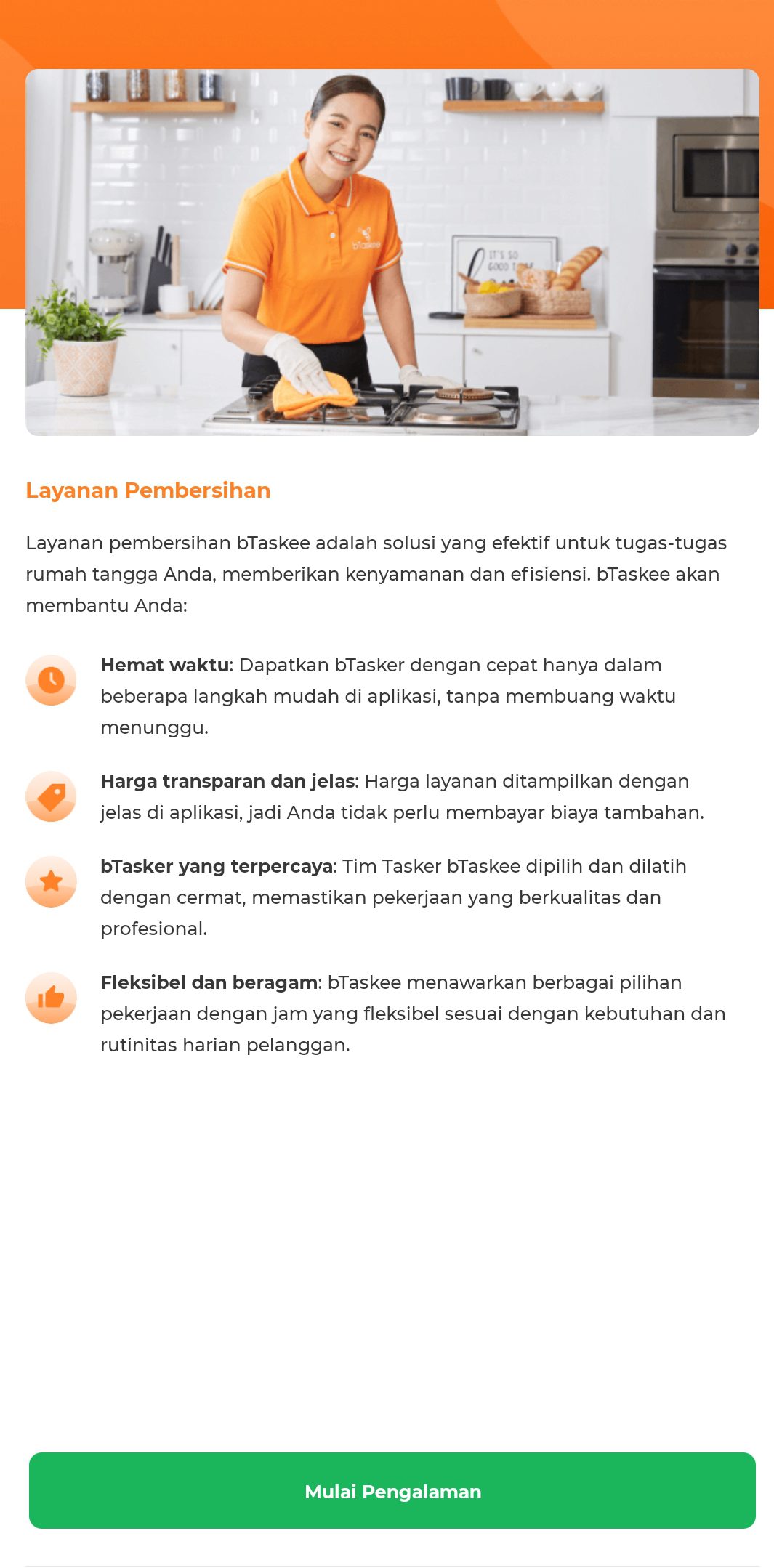 Tertarik untuk memesan layanan bTaskee? Yuk tunggu apalagi segera download aplikasi bTaskee dan dapatkan pengalaman layanan rumah tangga terbaik langsung dari ahlinya.