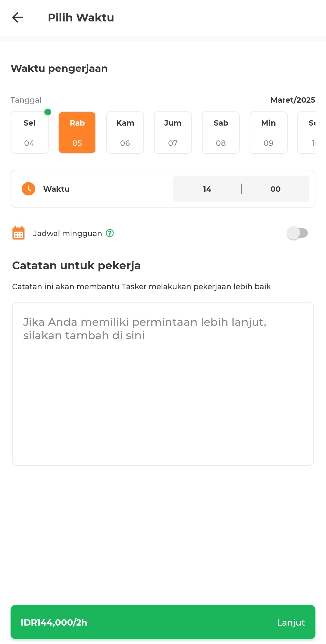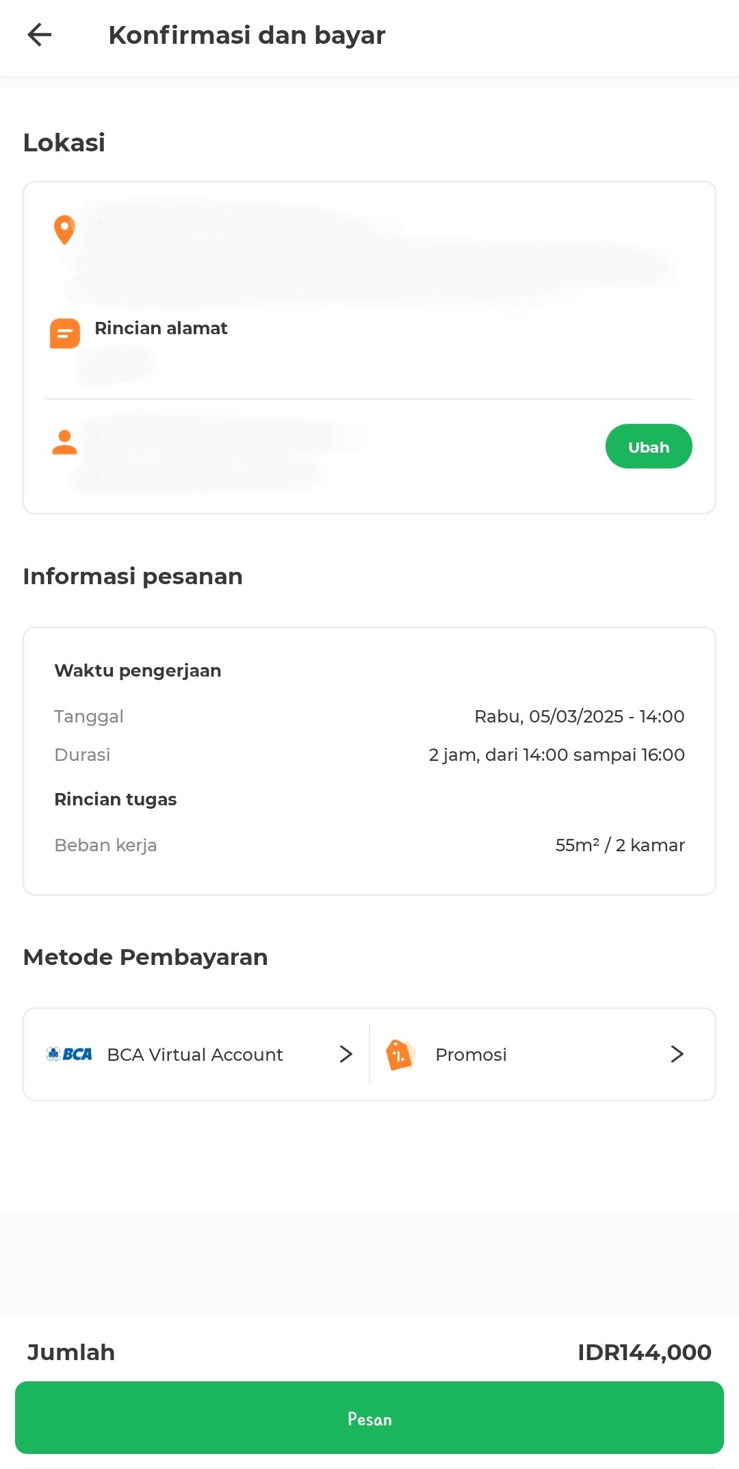 4. Periksa dan Konfirmasi Detail Pesanan: Pastikan semua detail pesanan sudah benar, termasuk jenis layanan, tanggal, waktu, dan lokasi. Jika ada perubahan, segera edit sebelum melanjutkan.