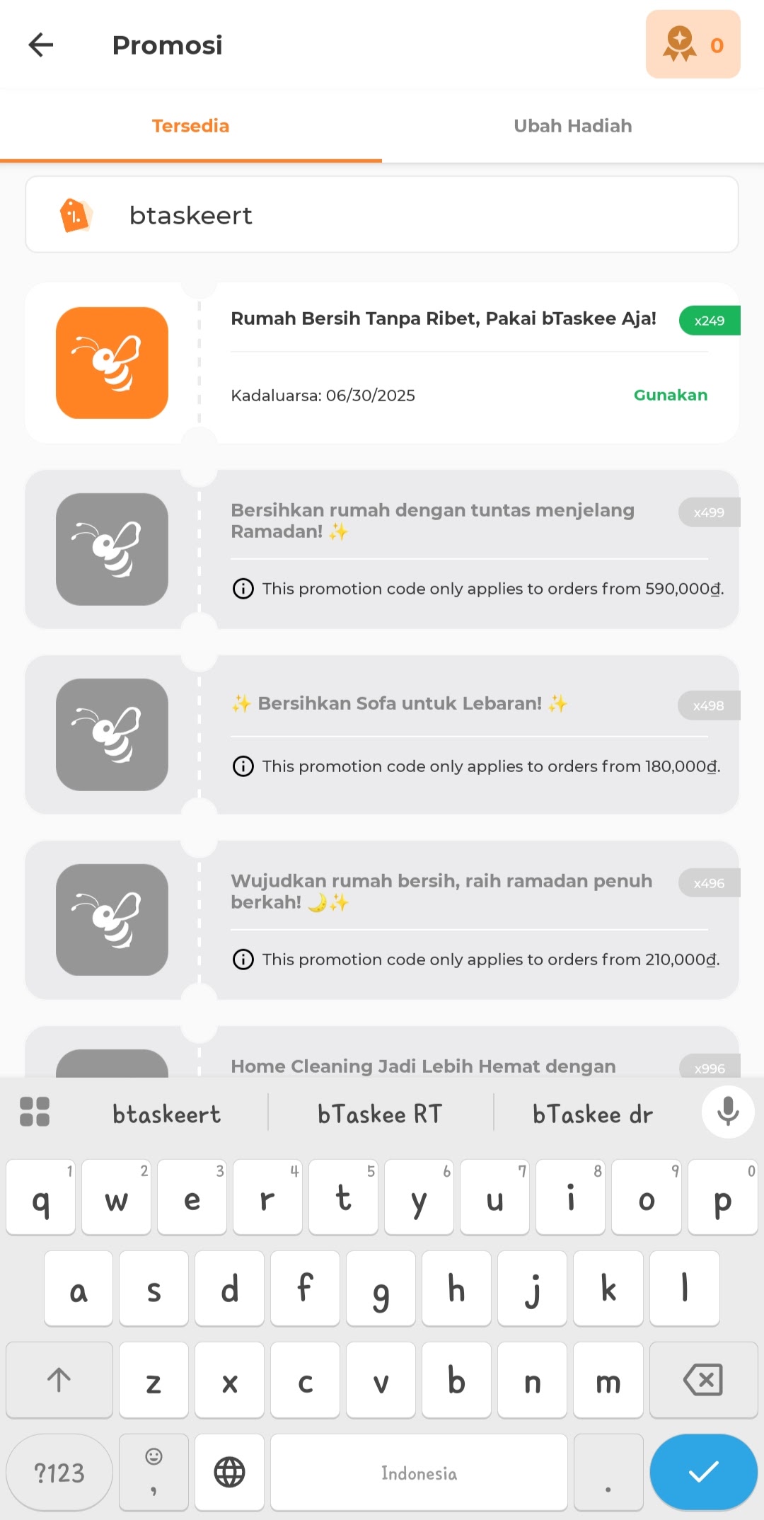 Cara Menggunakan Kode Promo bTaskee