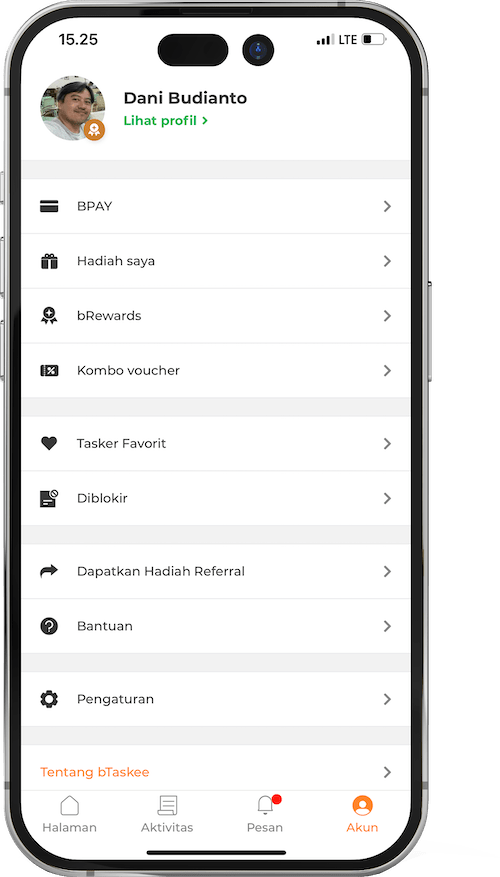 Buka aplikasi bTaskee , Pilih “Akun” dan pilih bRewards.