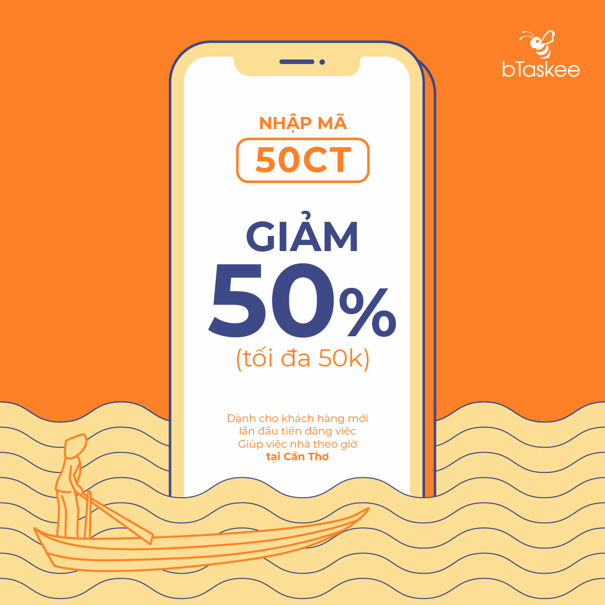 Đăng việc dọn dẹp nhà đầu tiên trên ứng dụng bTaskee để nhận ngay 50% ưu đãi.