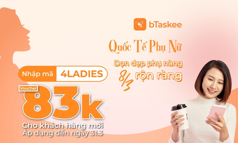 Nhập ngay mã 4LADIES để nhận ngay voucher giảm giá 83k cho tất cả các dịch vụ của bTaskee.
