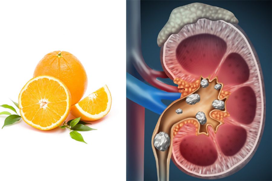 Lượng chất axit nitric – 1 dạng axit hữu cơ có trong trái cam có khả năng phân giải sỏi thận và đẩy lùi nguy cơ tái hình thành sỏi trong thận. Một nghiên cứu khác chỉ ra rằng nồng độ axit uric có trong cơ thể sau khi hấp thụ nước cam sẽ làm giảm triệu chứng của bệnh gout.