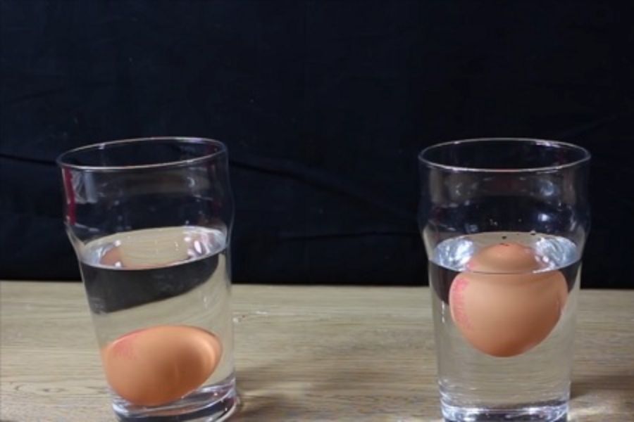 Ngâm trong nước: Bạn ngâm trứng vào trong chậu nước, trứng gà mới thường nổi lên trên bề mặt nước, trong khi đó trứng gà cũ sẽ dễ bị chìm gần đáy của chậu nước.