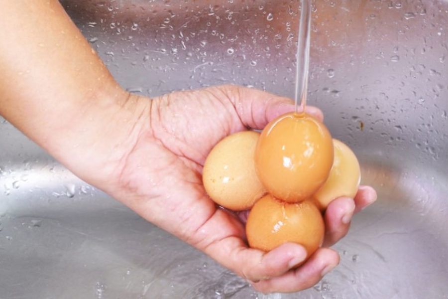 Rửa sạch vỏ trứng gà trước khi sử dụng: Việc này sẽ giúp bạn loại bỏ vi khuẩn trên vỏ trứng, tránh nguy cơ truyền nhiễm và đảm bảo vệ sinh trong quá trình chế biến.