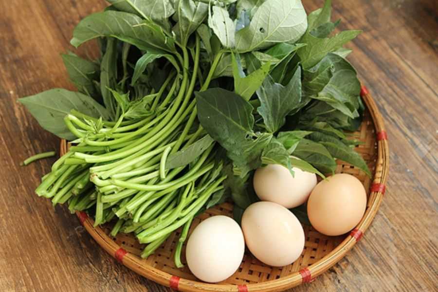 Rau xanh chứa nhiều chất xơ tốt cho hệ tiêu hóa. Thêm vào đó ăn rau xanh cùng trứng gà sẽ giúp bạn bớt cảm giác ngấy, dễ hơn hơn. Cách kết hợp này vừa chứa ít calo mà vẫn đảm bảo cơ thể hấp thụ đủ chất dinh dưỡng cần thiết cho cơ thể.