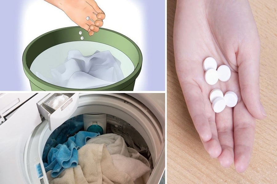 Bỏ vài viên aspirin vào máy giặt sẽ giúp áo trắng hơn rất nhiều. Bạn đã biết đến mẹo vặt gia đình hữu ích này chưa. Khi bạn đang lo lắng về việc áo bị ngả màu do mồ hôi, aspirin sẽ giúp bạn chấm dứt sự lo lắng đó.