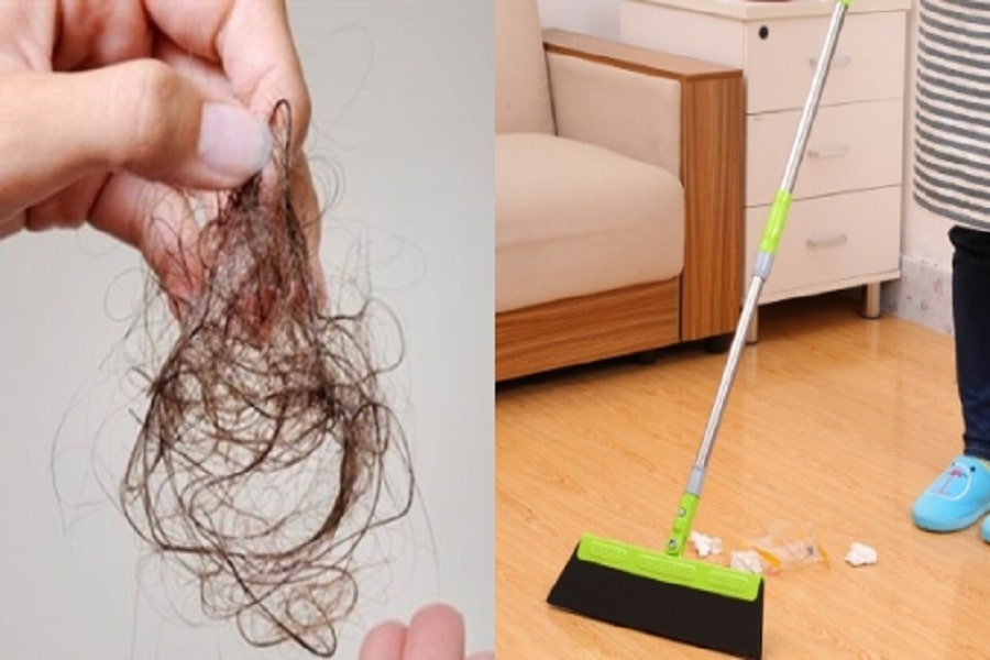 Vấn đề tóc rụng khắp nơi trong nhà là nỗi ám ảnh với mọi cô gái. Nếu chỉ sử dụng chổi để quét sẽ khiến tóc bám lên sợi chổi và khó lấy ra. Có một mẹo nhỏ là bạn hãy dùng băng keo hai mặt dán lên đầu sợi chổi trước khi quét. Sau khi quét xong bạn chỉ cần gỡ bỏ lớp băng keo đó đi là xong. Thật hữu ích đúng không?