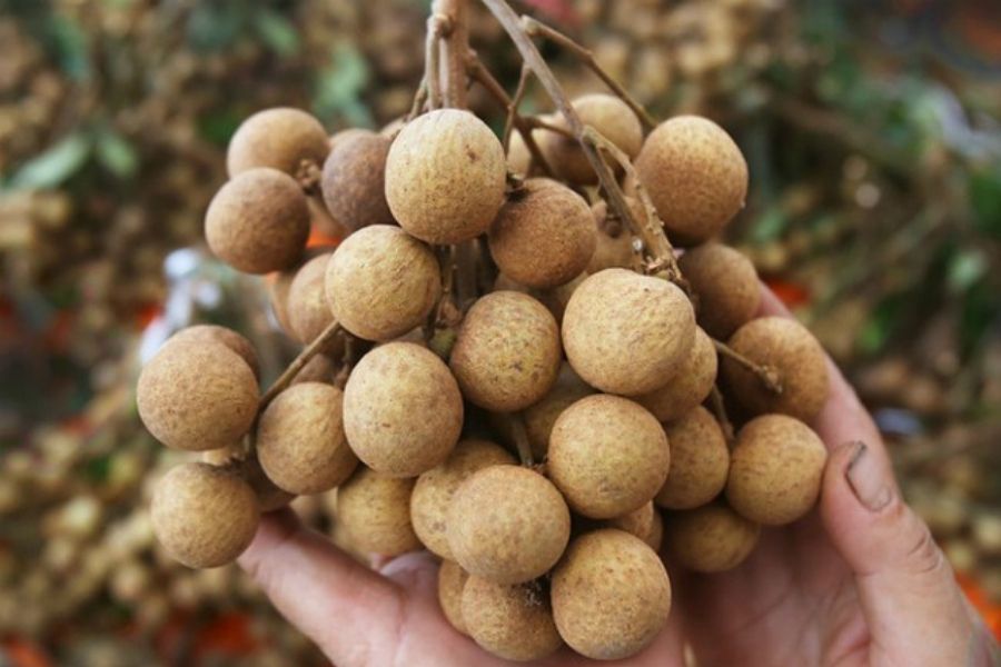 Chọn nhãn theo mùa vụ: Nên mua nhãn đúng mùa vụ, chọn quả có cành lá tươi tốt để tránh nguy cơ bị tẩm hóa chất. Nên mua nhãn được cắt cả cành, lá tươi, cuống xanh, cứng cáp, tỏa hương dễ chịu, không bị đốm trắng đầu cuống hay những quả nhãn rụng.