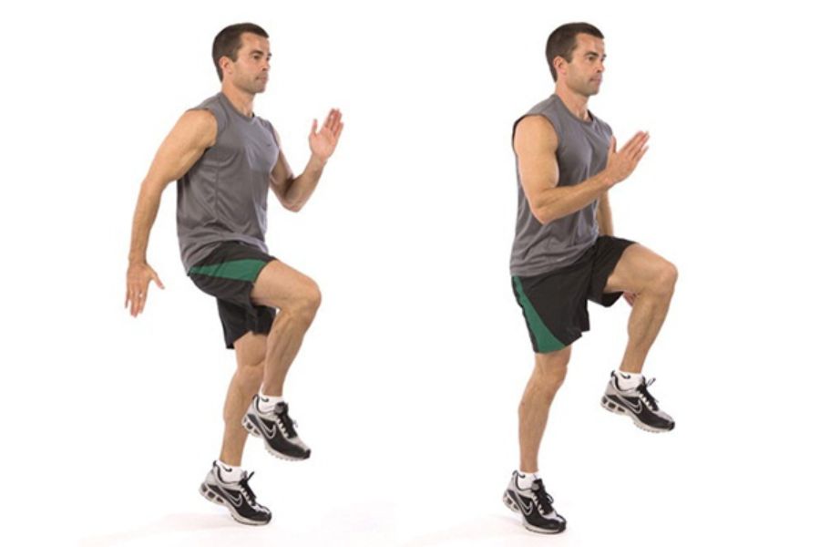 Đầu tiên, bạn đứng thẳng, 2 chân mở rộng bằng vai, tay có thể chống hông hoặc không. Sau đó, bạn nhẹ nhàng phối hợp chân trái và chân phải, nâng lên hạ xuống để tạo chuyển động nhịp nhàng. Sau bước cơ bản thì có thể tăng tốc chuyển động theo điệu nhạc.