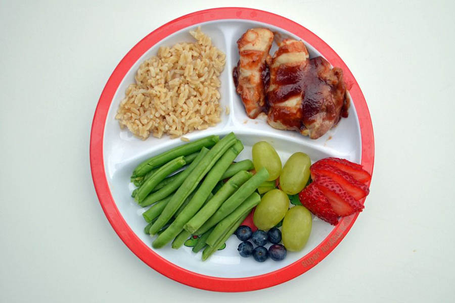 - ¼ khẩu phần là ngũ cốc (cơm, yến mạch…).