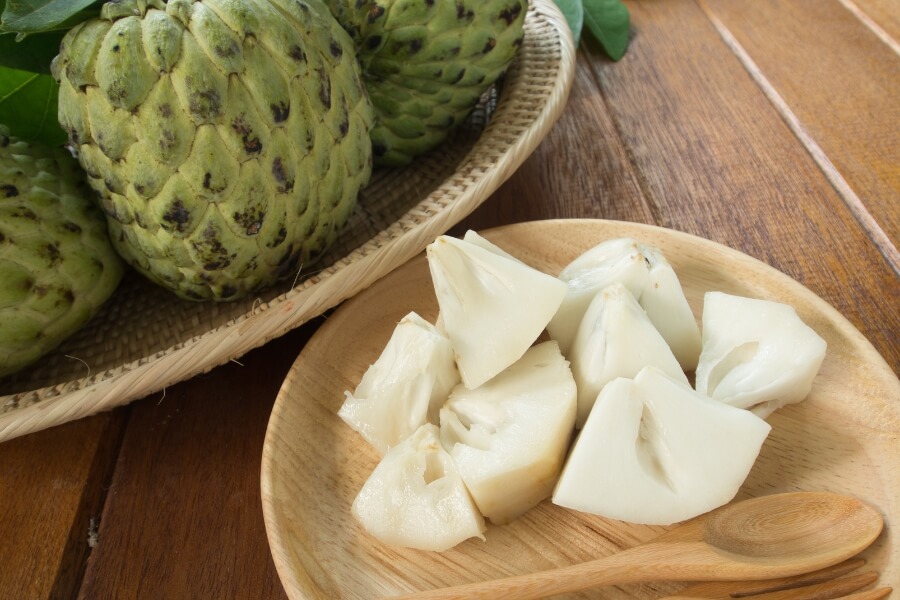 Ngoài ra, thành phần dinh dưỡng trong 100g na cũng rất đa dạng khi chứa 4.4g chất xơ, 2.1g protein, 0.1g chất béo không bão hòa cùng các loại vitamin (A, C, B2, B12, B6,…) và khoáng chất (sắt kali, magie,…) tốt cho cơ thể. Dưới đây là bảng thành phần khối lượng dinh dưỡng có trong 100g na chín: