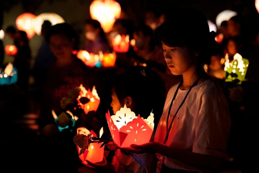 Hình Ảnh Thả Đèn Hoa Đăng Mùa Vu Lan