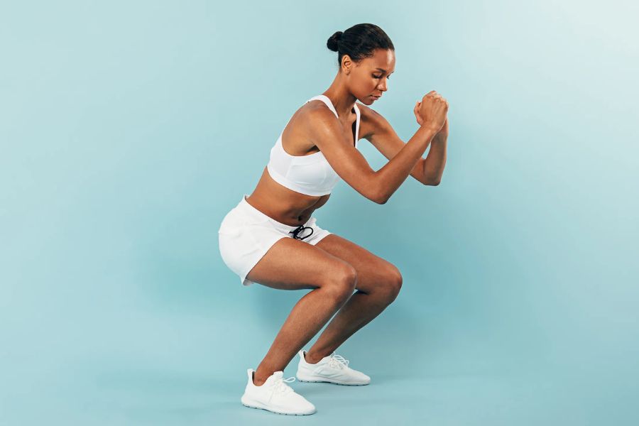 Squats thường được các chị em chăm chỉ luyện tập để sở hữu vòng 3 căng tròn. Tuy nhiên bài tập này còn có hiệu quả giảm cân toàn thân cực kỳ tốt đấy nhé. Thực hiện bài tập này, cơ thể vừa đốt cháy mỡ thừa hiệu quả vừa tăng sức mạnh của cơ bắp.