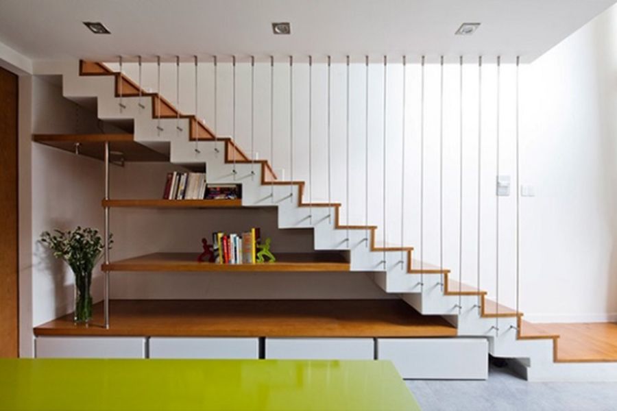 Hiện nay, cầu thang có hình dáng theo kiểu mềm mại được đánh giá là tốt nhất. Cách thiết kế cầu thang này sẽ giúp những luồng khí tốt trong nhà di chuyển đều đặn, mang lại không gian thoáng mát, thoải mái.