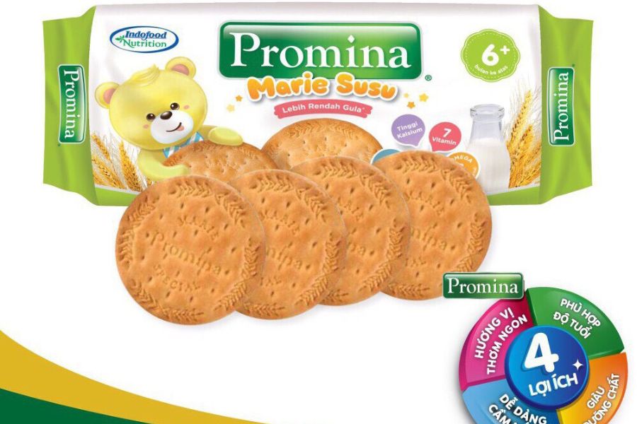 Bánh ăn dặm Promina được sản xuất bởi thương hiệu Promina Indonesia, thuyết phục người tiêu dùng hoàn toàn bởi chất lượng sản phẩm và uy tín nhờ hoạt động lâu năm trên thị trường.