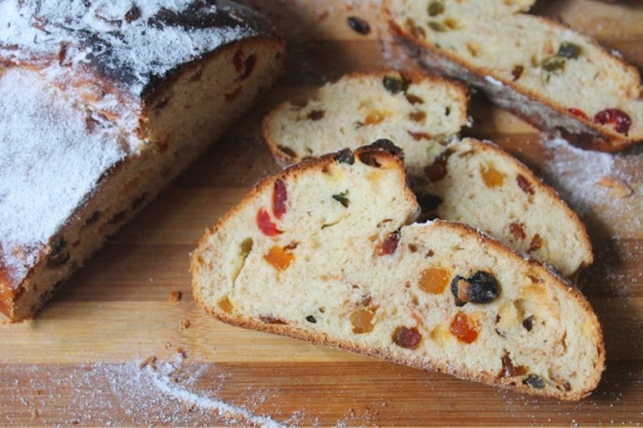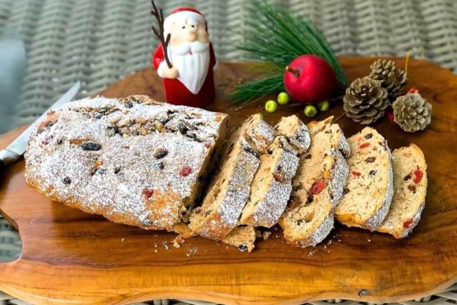 Bánh mì ngọt nhân hoa quả khô Christstollen là món bánh thơm ngon không thể thiếu trên bàn ăn dịp Giáng Sinh của nước Đức.