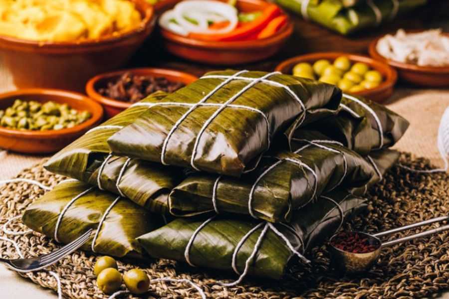 Món ăn truyền thống trong dịp Giáng Sinh của Venezuela, bánh Hallacas ngũ cốc có lớp vỏ ngoài dẻo mềm được làm từ bột ngũ cốc. Nhân bên trong được tạo nên từ đa dạng các loại nguyên liệu như: Thịt bò, heo cừu cùng dầu oliu, nho khô và bạch nụ hoa.