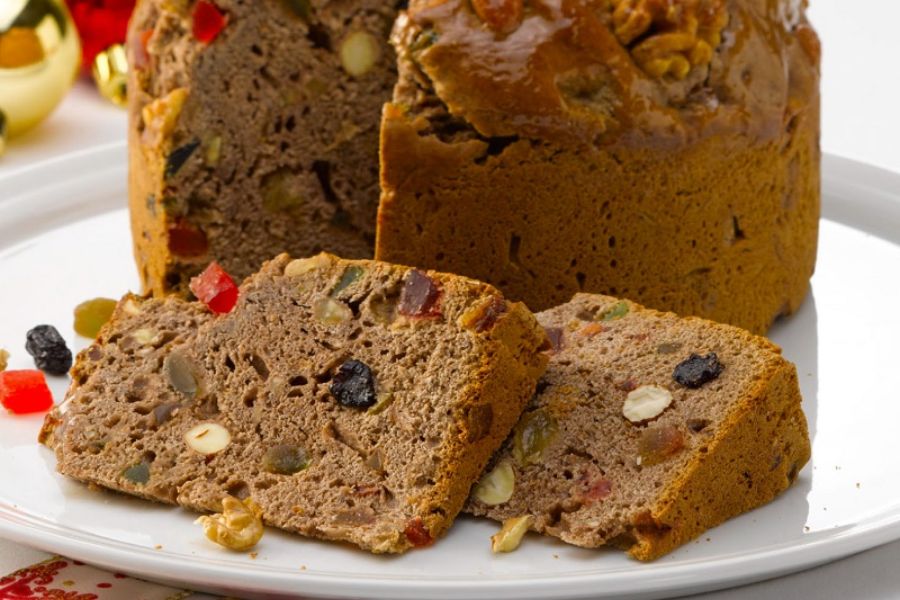 Bừng tỉnh vị giác với hương thơm và vị ngọt ngào từ mật ong, điểm thêm chút cay nhẹ của gừng và rượu. Ngoài ra, món bánh còn được tạo nên từ lớp nhân bùi béo của các loại hạt khô, quả óc chó và các loại trái cây tươi.