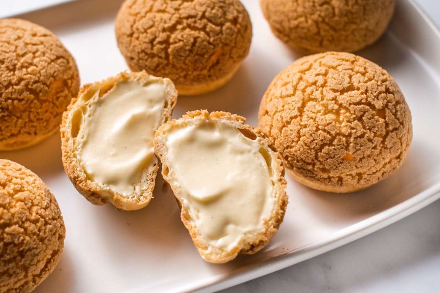 - Bánh su kem vỏ giòn: Lớp vỏ giòn tan kết hợp nhân xốp mềm, bánh su kem vỏ giòn nạp vào cơ thể khoảng 180 calo/50g.