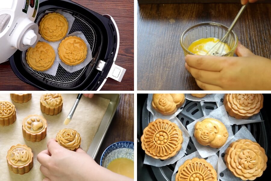 - Dùng lò nướng chuyên dụng hoặc nồi chiên không dầu để nướng bánh Trung Thu. Bạn cài đặt mức nhiệt độ khoảng 180 độ C và nướng trong thời gian chừng 5 – 8 phút.