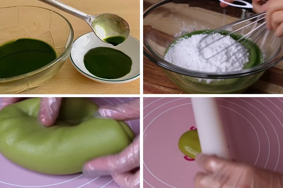 - Pha nước cốt lá dứa cùng với một chút màu thực phẩm để tạo màu xanh đậm.