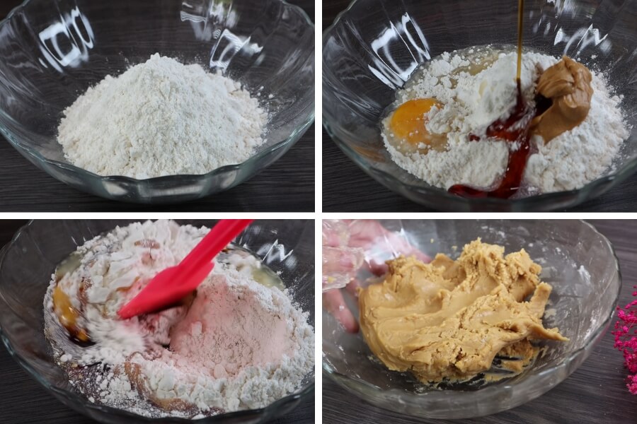- Dùng tay nhào nặn hỗn hợp bột thành một khối thống nhất, kết dính với nhau.