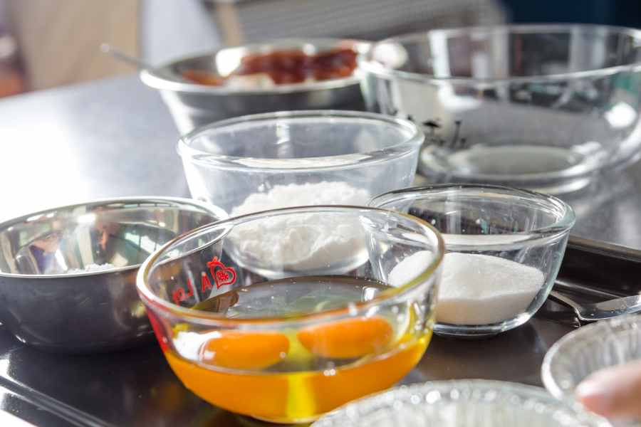 Chuẩn bị 2 phần nguyên liệu khác nhau cho phần nhân bánh và vỏ bánh, như sau: