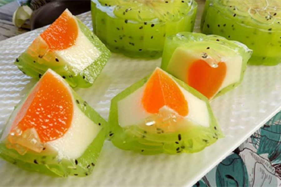 Làm bánh rau câu kiwi