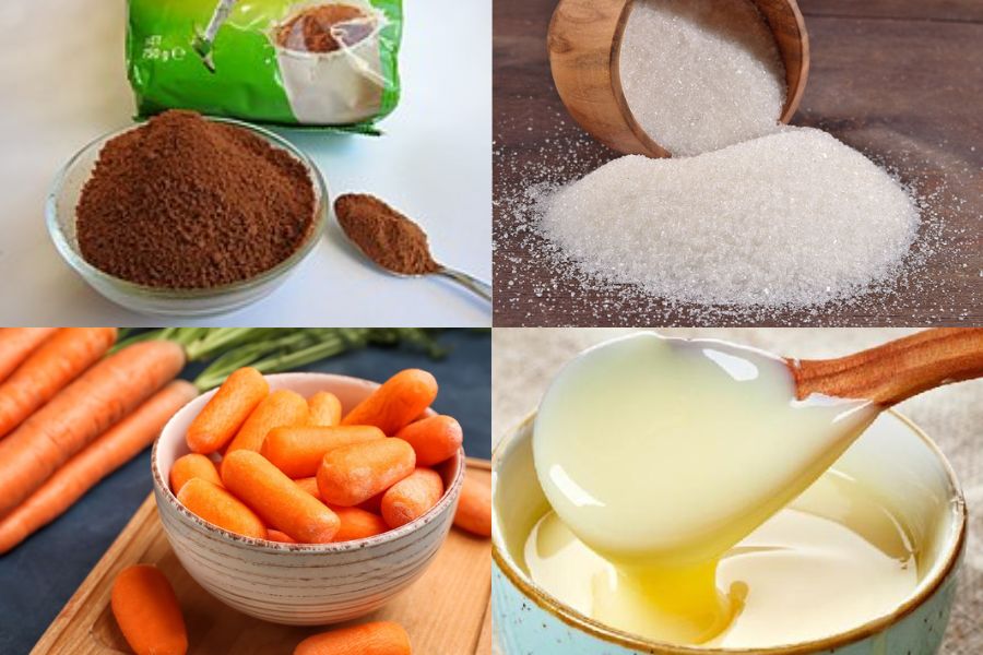 - Bước 2: Pha hỗn hợp gồm 30g đường 4g bột rau câu và 300ml nước ép cà rốt.