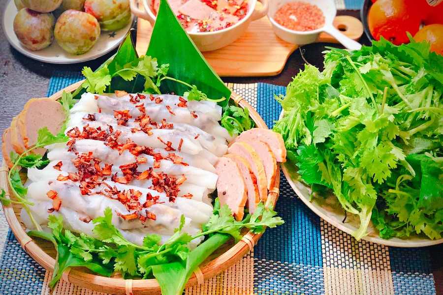 - Bánh ướt không nhân (chay): Dùng kèm với rau sống như giá đỗ, rau diếp cá, dưa leo và chấm với nước mắm pha chua ngọt có thêm tỏi, ớt, đường, chanh…