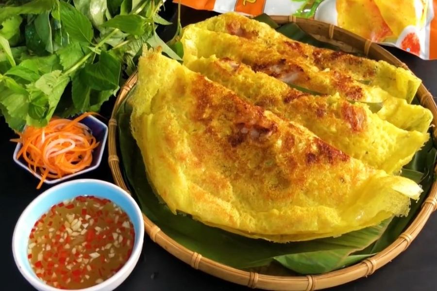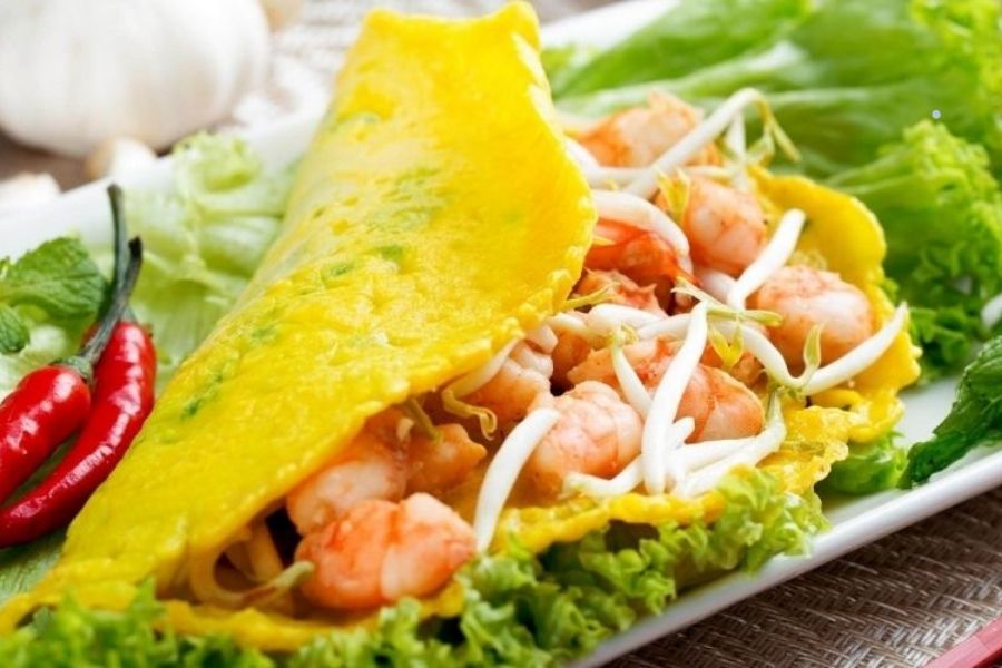 Bánh xèo được biết đến là một món bánh dân dã, phổ biến tại các tỉnh miền Trung và Nam Bộ. Lớp vỏ bánh vàng giòn, nhân tôm thịt đậm đà kèm nước chấm và rau sống các loại khiến biết bao thực khách mê mẩn.
