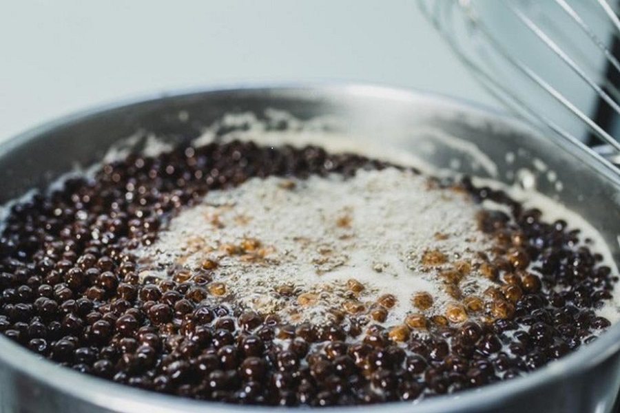 Để trân châu được ngon nhất bạn cần chú ý ngay từ bước luộc trân châu, phải đợi nước sôi hẳn thì mới thả trân châu vào luộc. Đậy kín nắp vung thi thoảng mở ra khuấy đều và kiểm tra độ chín của hạt trân châu.
