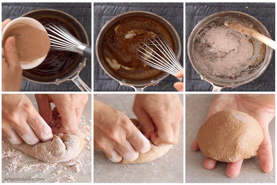 Sau đó dùng tay nhào bột thật kỹ, kéo bột đến khi không còn dính tay. Việc nhào kết bột thật dẻo sẽ giúp hạt trân châu được dai ngon hơn sau khi luộc.