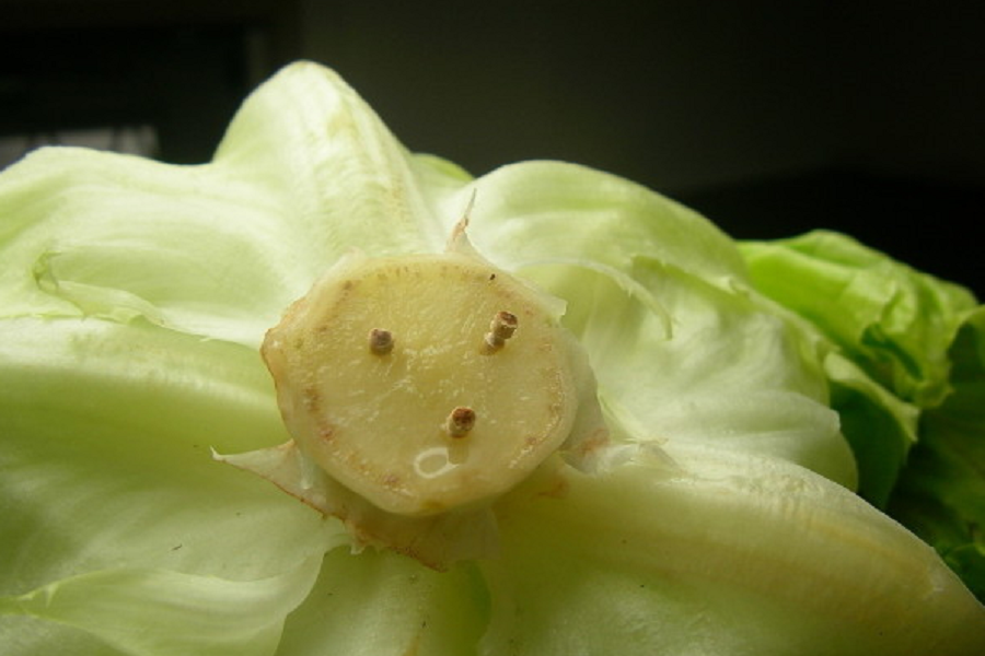 Bạn cắm 3 que tăm nhọn có chiều dài khoảng 5cm thật sâu vào cuống bắp cải, chỉ chừa lại khoảng 0,5cm thì mới mang lại hiệu quả. Tăm nhọn có vai trò giữ nước và lưu thông nước tốt hơn cho toàn thân cây bắp cải.